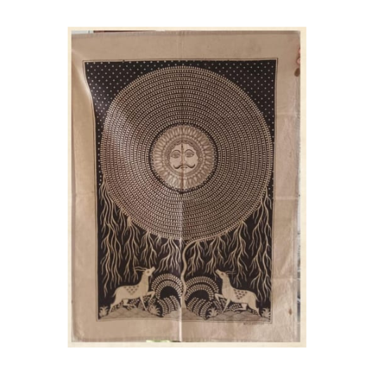 This traditional artwork beautifully depicts the Sun God (Surya) radiating endless circles of light and...