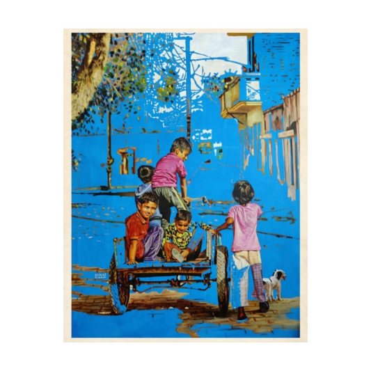 Step into the vibrant world of Joy Ride, a painting filled with nostalgia, innocence, and...
