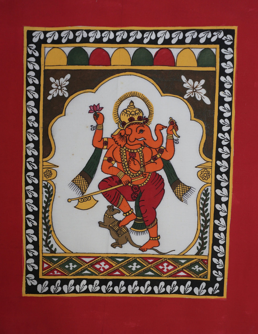 This joyful depiction of Lord Ganesha, rendered in the traditional Pattachitra style of Odisha, captures...