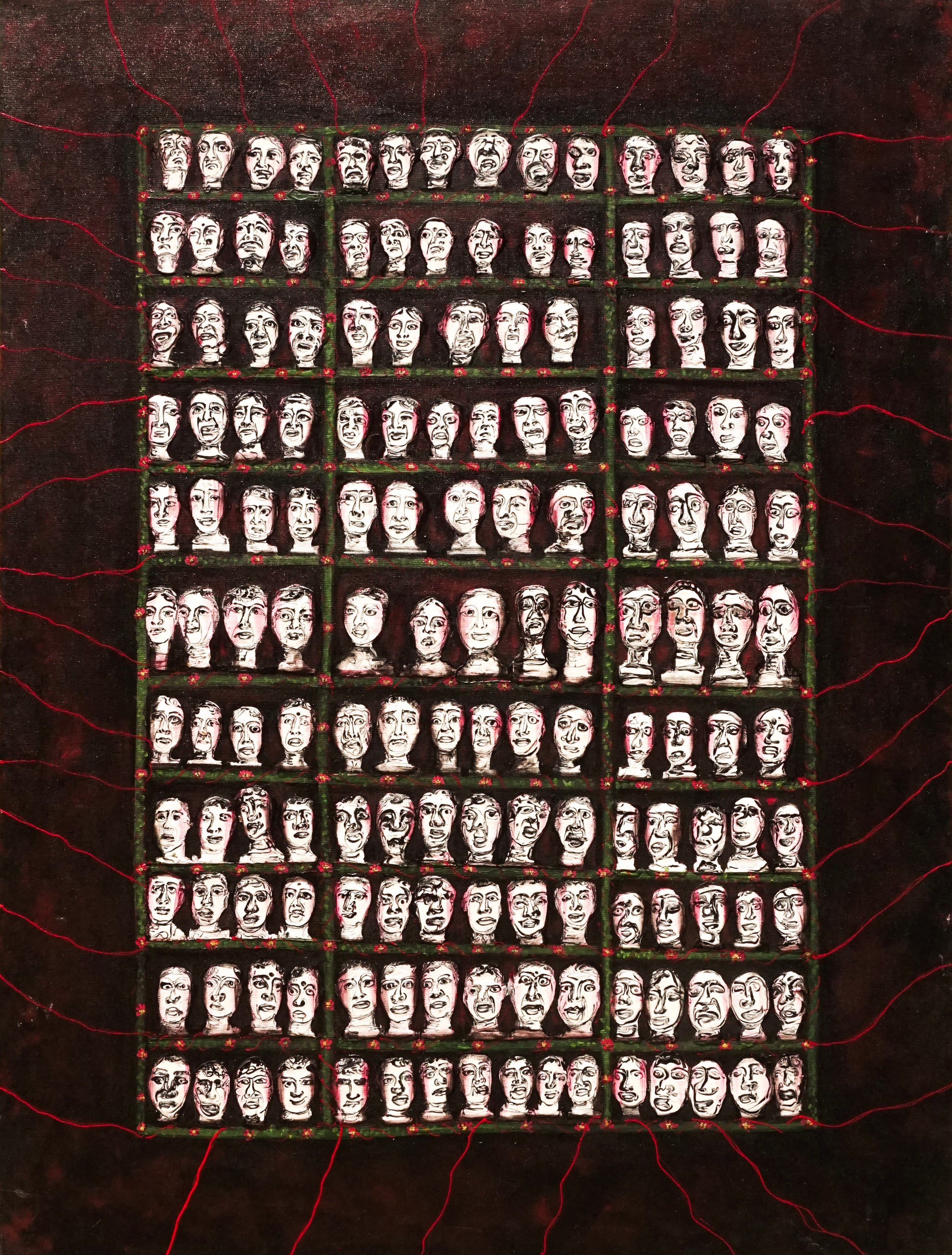 An intricate grid of varied faces captures the fleeting, ever-shifting identities we wear each day. “Daily New Face” explores the rhythm of modern life, where each square holds a unique expression, yet together they echo the collective experience of transformation, performance, and adaptation.