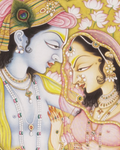 Kishangarh style of miniature art, depicting eternal lovers, Radha and Krishna, in a beautiful heart-shaped frame.
